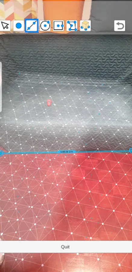 3.1.) Use "line" icon and tap blue dots once again to measure the distance between them
