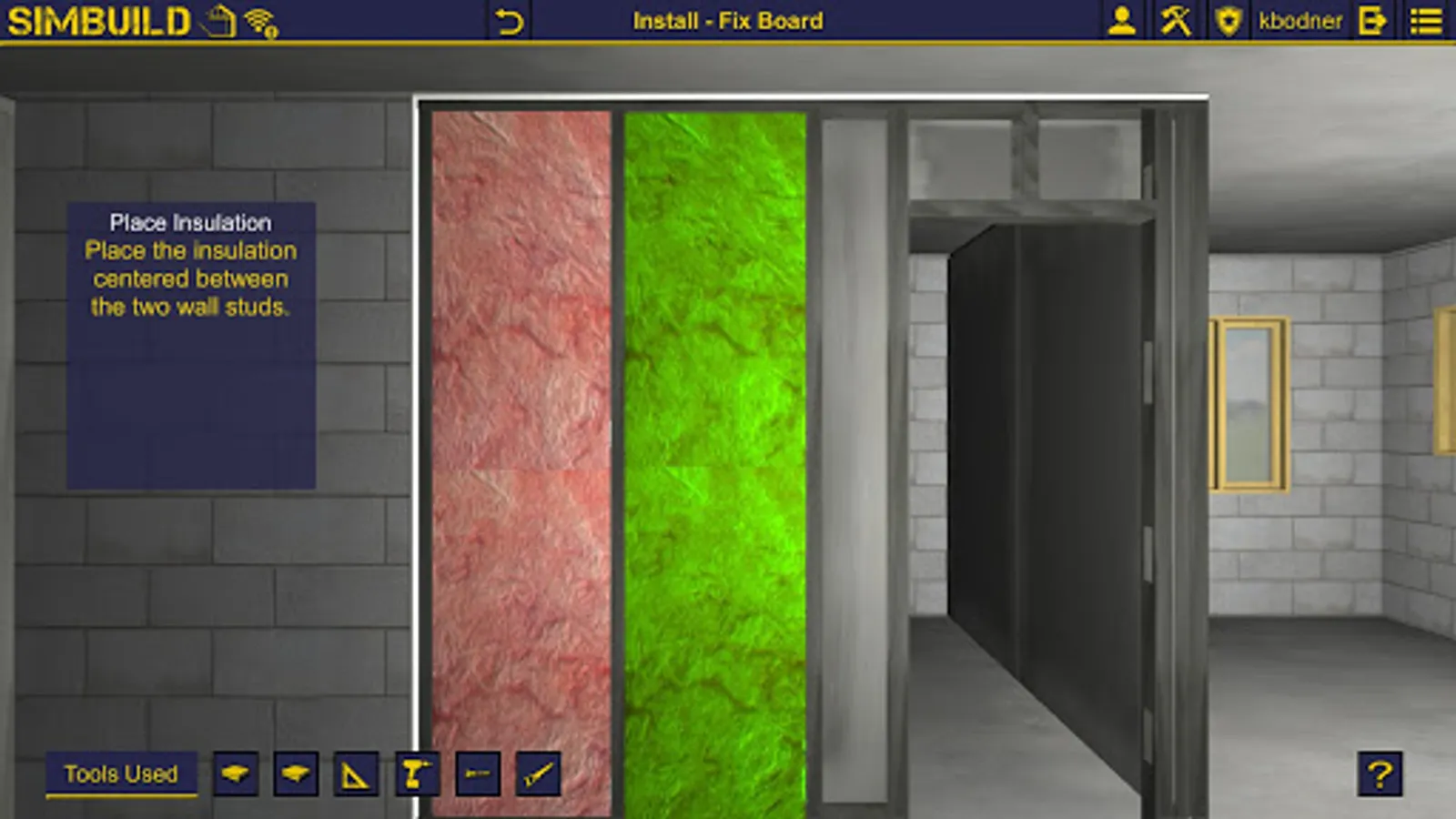 SimBuild Carpentry™ teaches fundamental skills used in residential construction. Students can progress through worksite safety procedures, tool identification, plan reading, measurement, and framing activities to learn job skills. Complete work orders, build job skills, and gain the competencies needed for careers in residential construction.