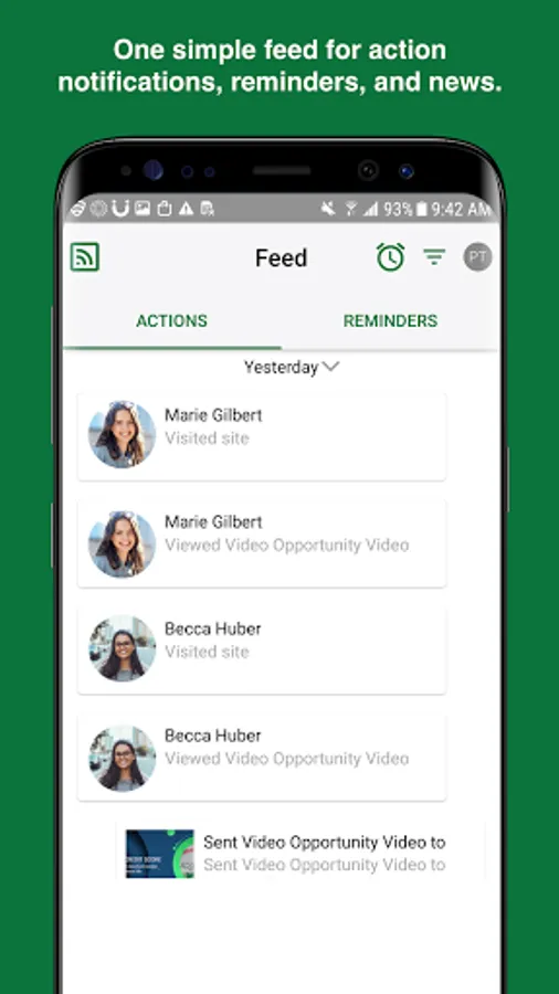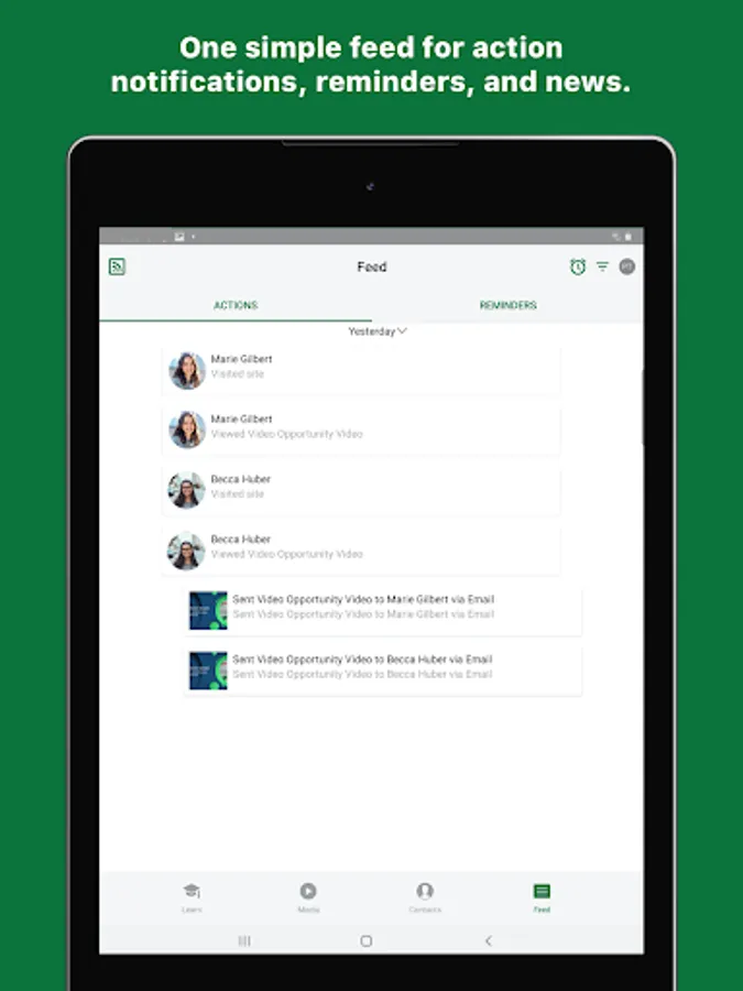 Feed: Keep track of everything you’ve shared and see what your contacts have viewed with notifications. You can even swipe notifications to mark them as a Reminder. News also brings all of the latest announcements and social posts from corporate straight to you--in one convenient place!