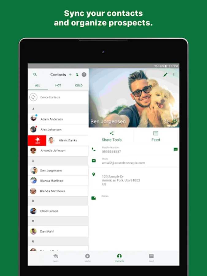 People: Manage contacts easily and swipe to sort them by interest level. You can make connections, add notes, or check out the Contact Feed to see the tools you've shared and whether or not your contacts have actually viewed them.
