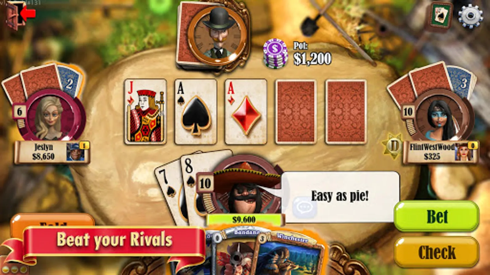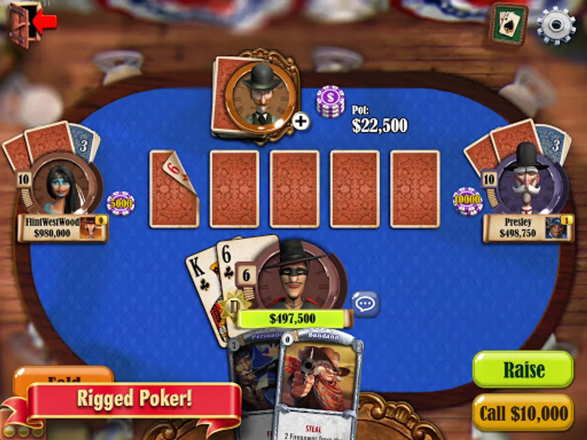 Set to a familiar Wild West theme, Showdown Poker Legends brings together a roster of wacky characters, each with their own Special Abilities in the form of Showdown Cards. You can use these cards to bend the rules and change the flow of the game in your favour. These cards, along many more you can collect as you play, will entirely redefine your strategies at the table.