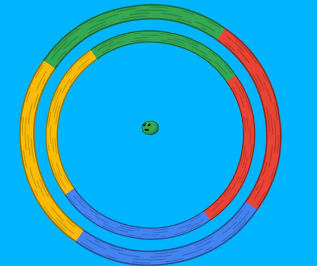 Tap to bounce your way carefully through each of the moving obstacles and make your character switch color to enable you to go through the obstacles with the matching color.