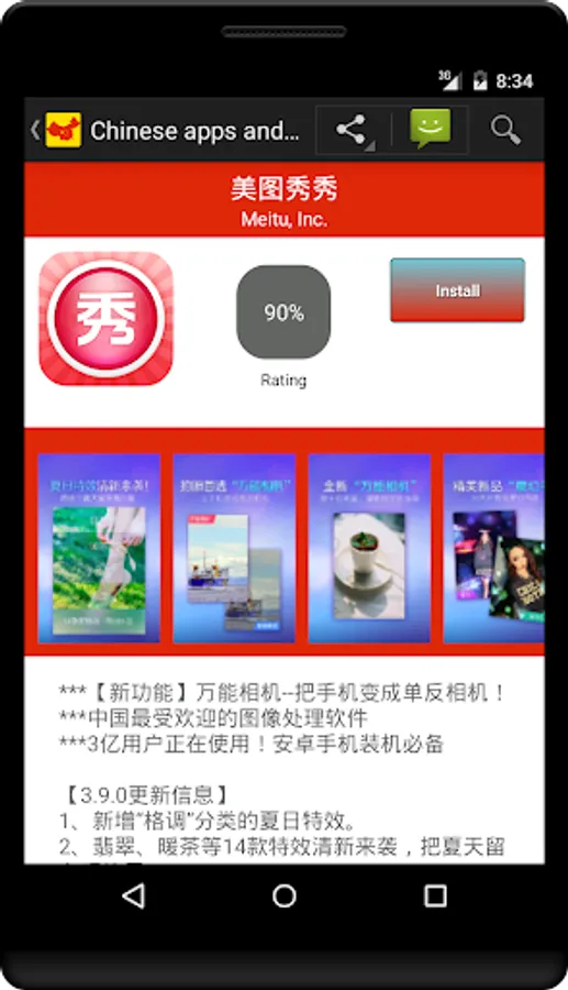 Browse top apps, new apps, apps by categories, read description, ratings, see screenshots and install apps you like the most.
