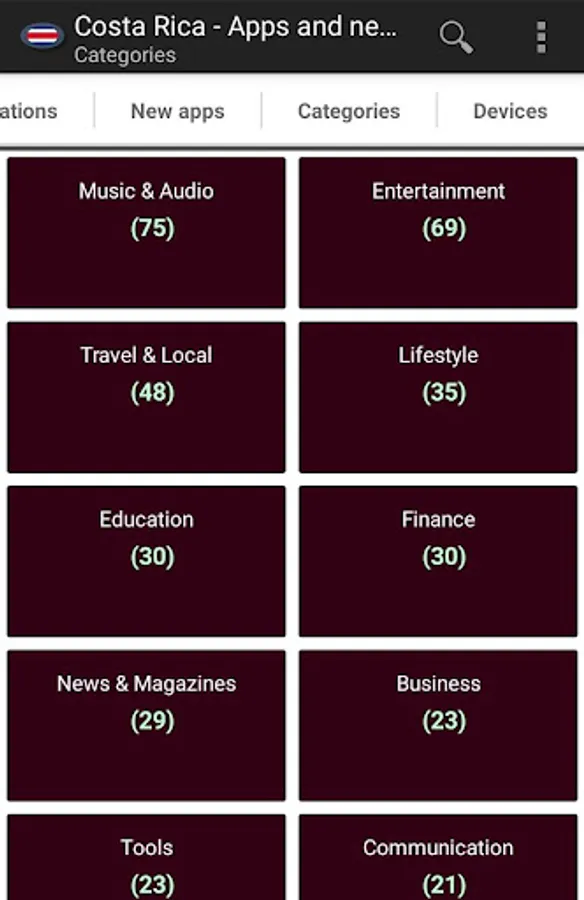If you are developer of app/game specific to Costa Rica and it isn't in our list feel free to send us app package name (google play link) and will be happy to add to in our database.