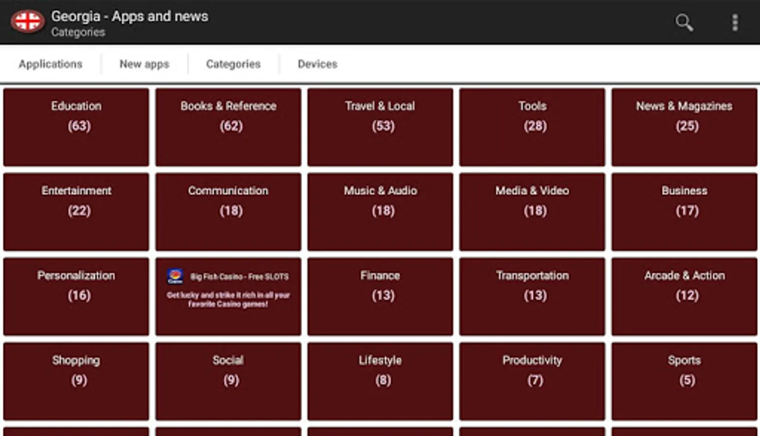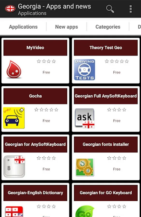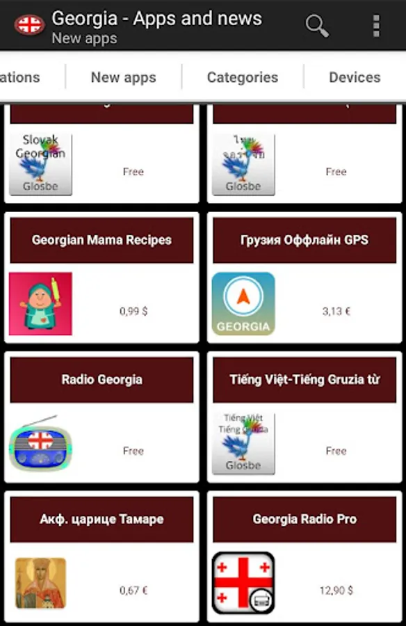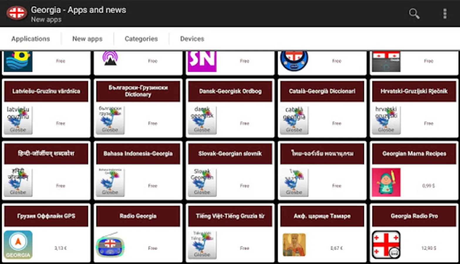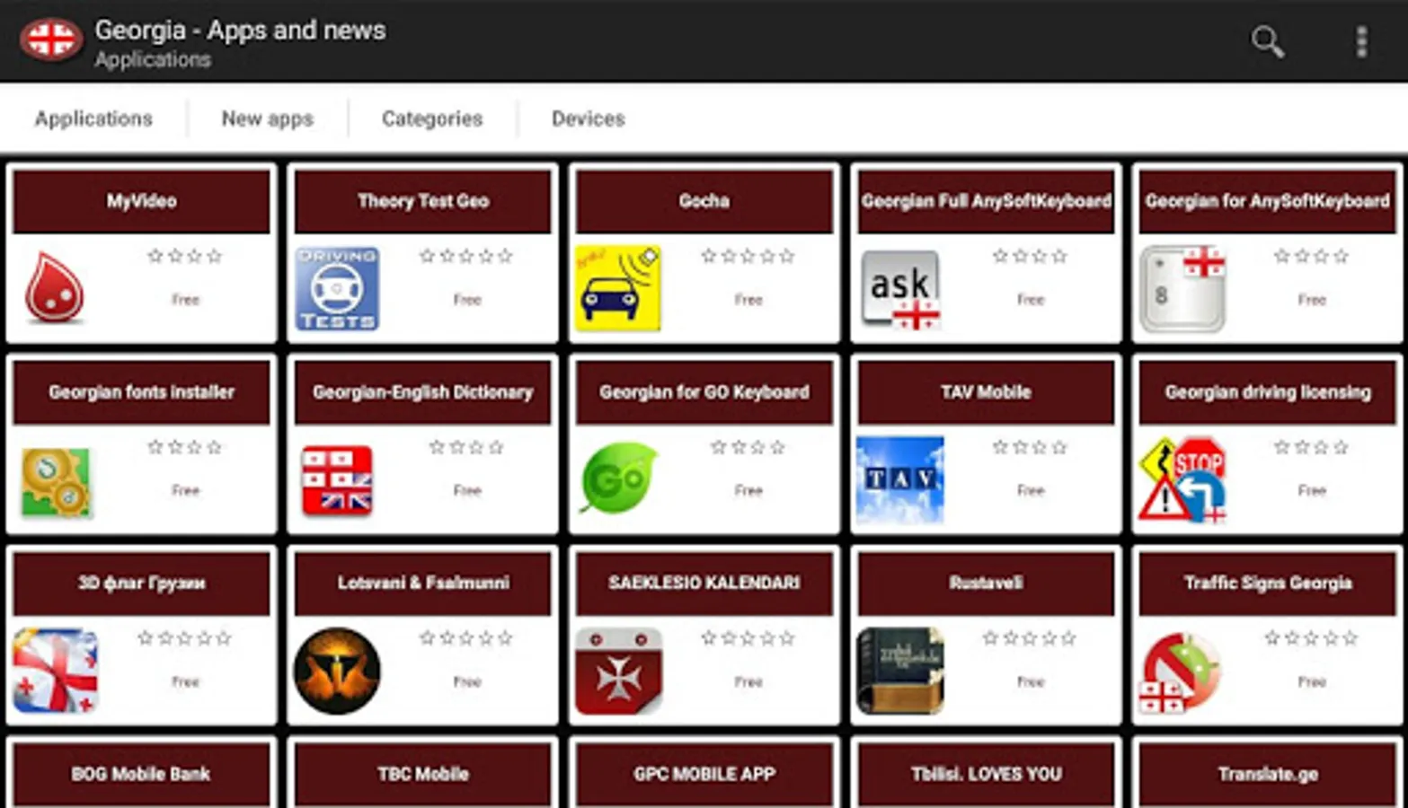 If you are developer of app/game specific to Georgia and it isn't in our list feel free to send us app package name (google play link) and will be happy to add to in our database.