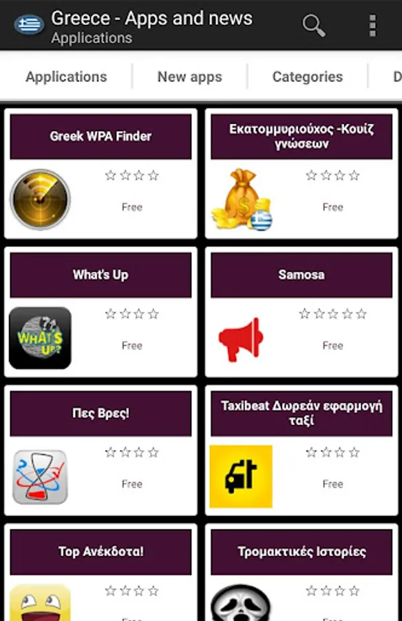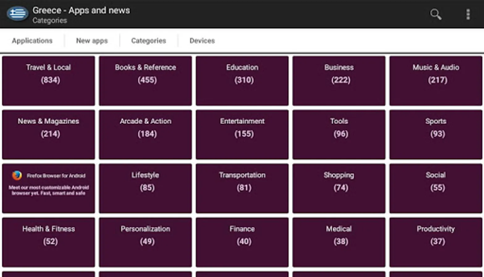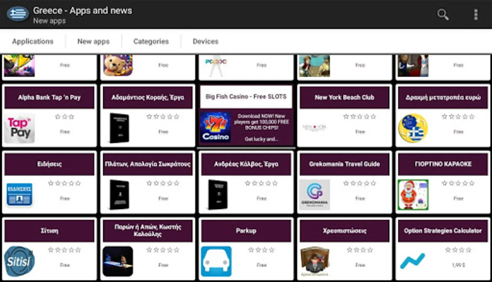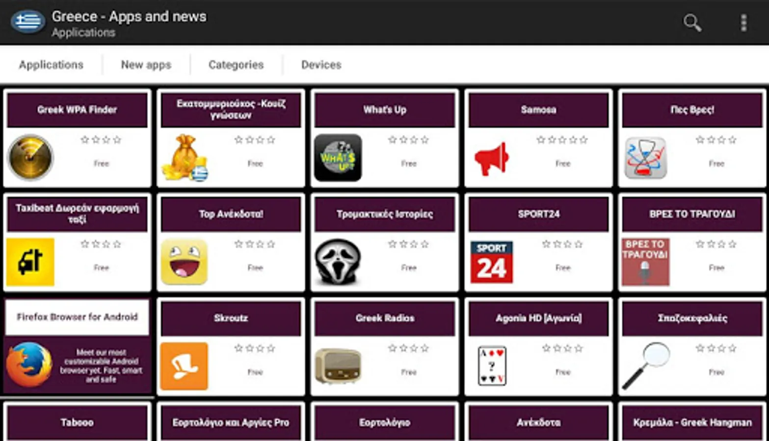 If you are developer of app/game specific to Greece and it isn't in our list feel free to send us app package name (google play link) and will be happy to add to in our database.