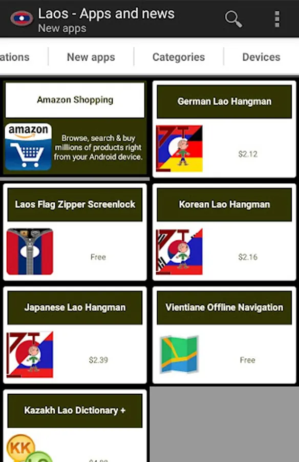 If you are developer of app/game specific to Laos and it isn't in our list feel free to send us app package name (google play link) and will be happy to add to in our database.