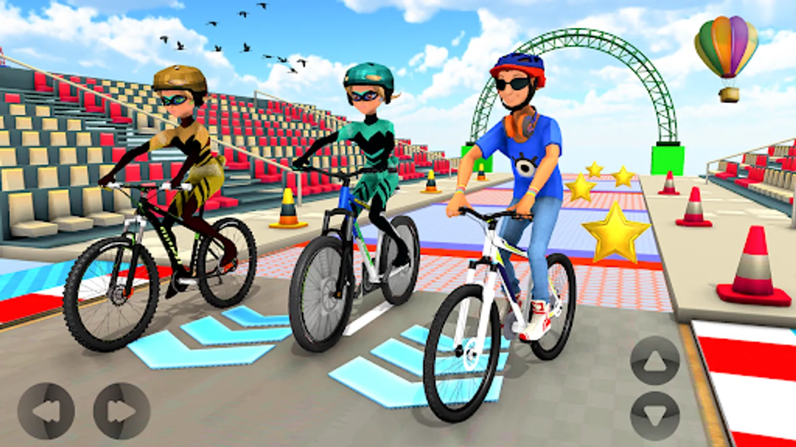Get ready for the thrilling bicycle stunt ride of BMX Cycle Game in Bicycle Racing Game and BMX Bicycle Driving Game. Select your bmx cycle race game mode and start your BMX Bike stunts journey in bicycle stunt game offline with the bicycle simulator. In cycle racing games there are number of hurdles and obstacles on the way, so keep your eyes on the bicycle racing stunt track. Avoid hurdles while you are driving your BMX Bicycle in bmx cycle race. Otherwise you may fall and level will lose from bmx cycle stunt games. So race your BMX Bike and pedal fast to your cycle and complete the impossible level on sky high and curvy tracks. Manage the BMX Bike speed & balance of your bicycle while crossing the obstacles on sky-high tracks. Enjoy the Cycling Game.