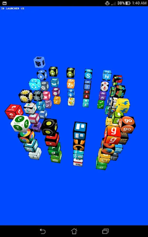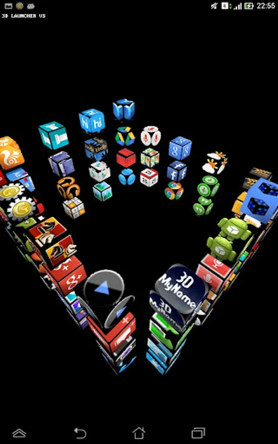 3D LAUNCHER VS is developed to extend your imagination to real 3D world. Experiment with different 3D Shapes and set your launcher with best 3D shapes you like for application icons. This Launcher is so simple to use, Press Launcher button on home screen to launch 3D Launcher. When a 3D app icon appears, swipe left, right, up or down to rotate Apps in 3D View. Pinch Zoom to ZOOM-IN or ZOOM-OUT in 3D View. Click on 3D app icon to launch app. User can Long press on Home screen to access features like Widgets, Wallpapers and App Settings. Click anytime on HELP button for Help.