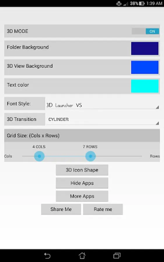 In settings, User can switch between normal and 3D Mode, customize look and feel of app and can even change Animations.