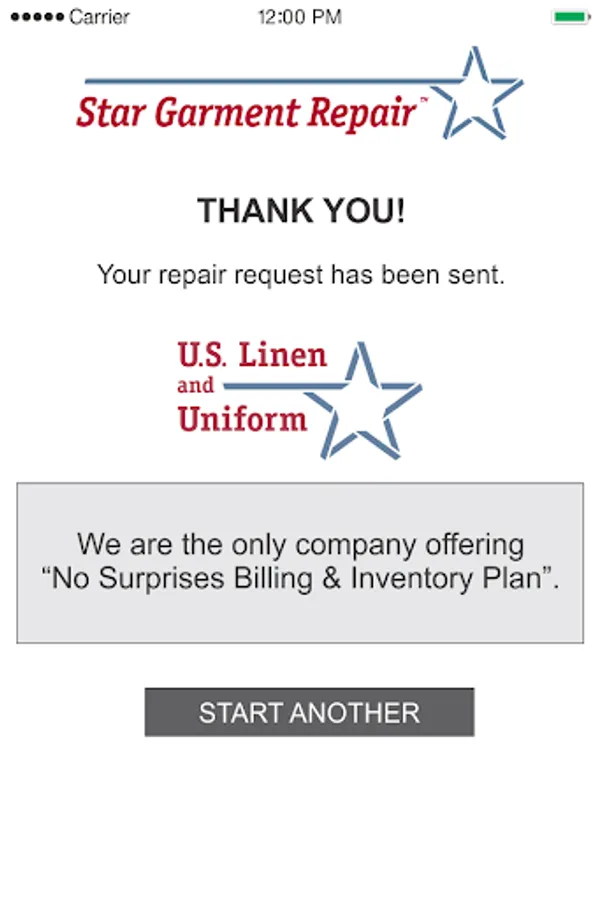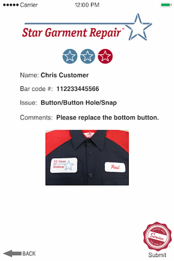 To keep your employees always looking their best we now offer our exclusive Star Garment Repairâ„¢ App. In less than a minute your employees can help us provide better service by telling us about any repairs their garments need.