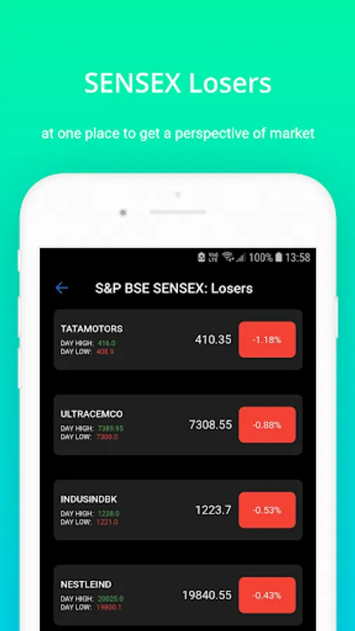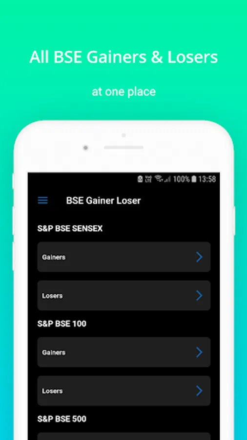 BSE Gainer Loser presents you the gainers and losers of SENSEX the main index of BSE along with BSE 100 & BSE 500 indices and makes sure that you have a smooth experience in getting gainer and loser stocks and making a handsome profit.