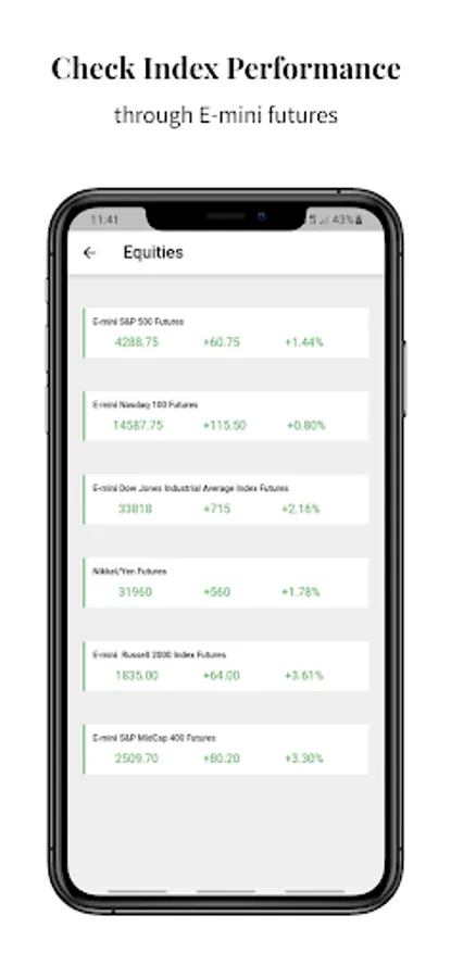 • Equities: E-mini S&P 500 Futures, E-mini Nasdaq Futures etc