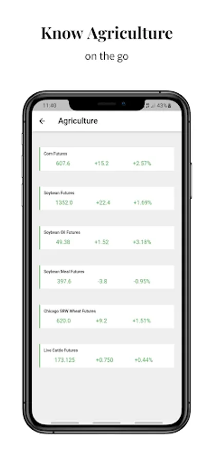 • Agriculture : Corn Futures, Soyabean Futures, Live Cattle Futures etc