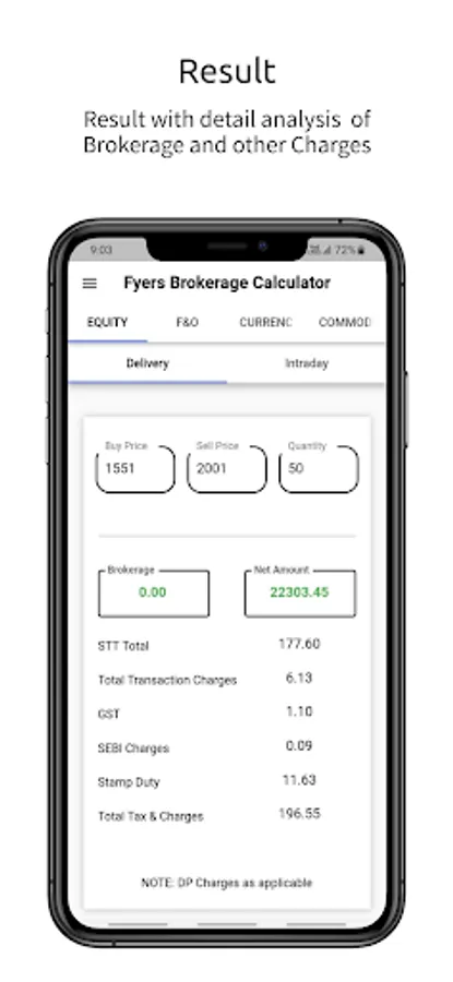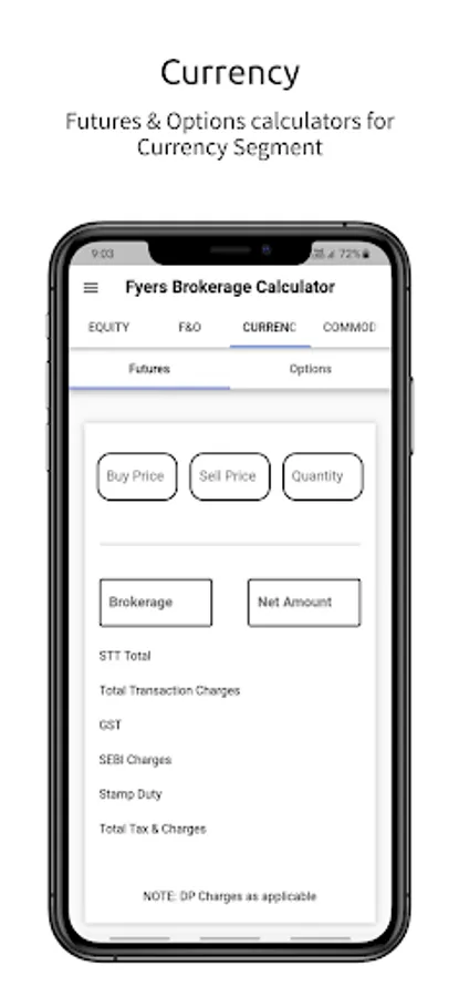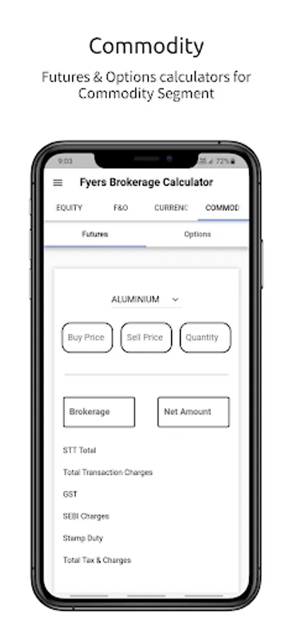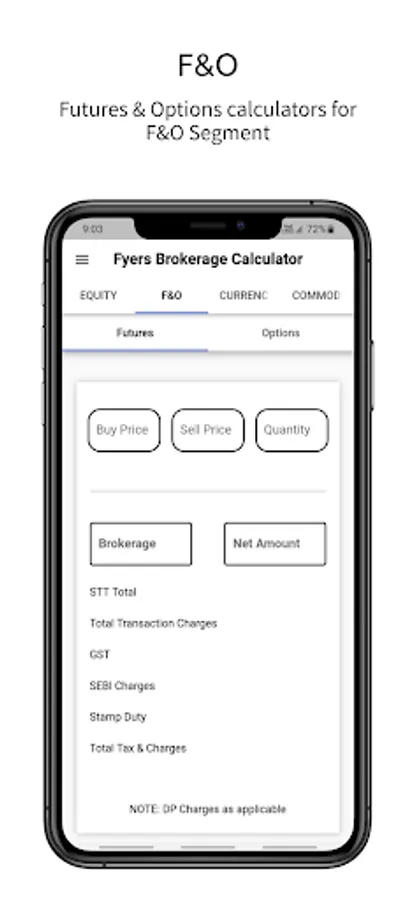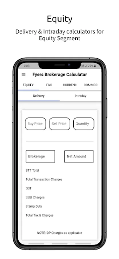 This calculator covers all four segments: Equity, F&O, Currency and Commodity so that you have the ease to calculate brokerage of all segments using one app.