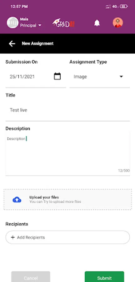 This app facilitates sending of assignments from college faculty to students and students in turn can and submit back the completed assignments.