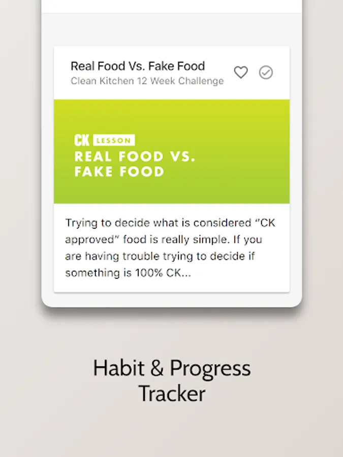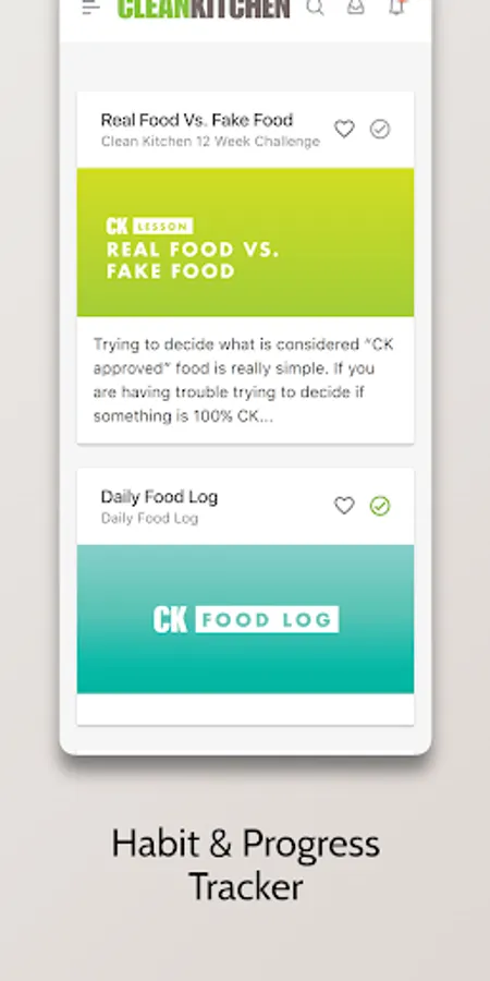 • Access to our CK Recipe Index— think of it as a "live cookbook" with filters to search for recipes based off of food type and cooking method. The CK App is the only place you will find our entire library of recipes, including all from "Clean Kitchen: The Cookbook," and published to our website and social media. Furthermore, the CK App is the only platform you will be able to access all new CK Recipes we share only to our CK Community Members!