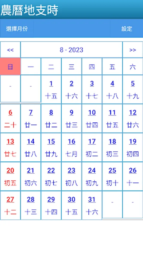 - This application supports viewing solar and lunar dates