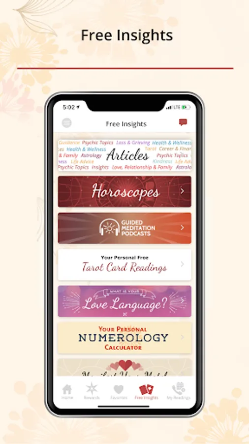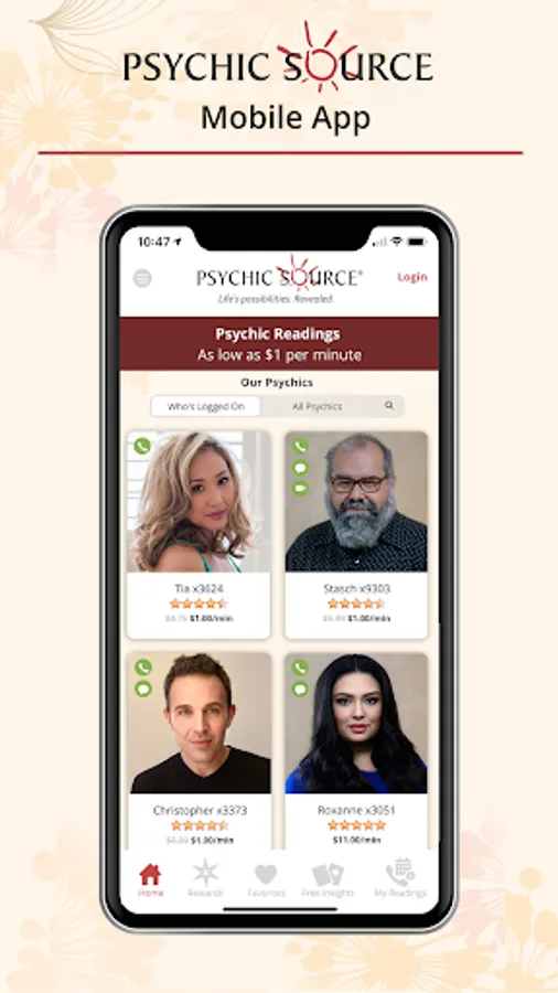 All app users can also get Free Insights including tarot card readings and daily and yearly Horoscopes. Listen to our meditation podcasts starting with our Attracting Love series. Free access to all Psychic Source content including articles by your favorite advisors, infographics, podcasts, videos and more. Easily share all content from the app with friends.