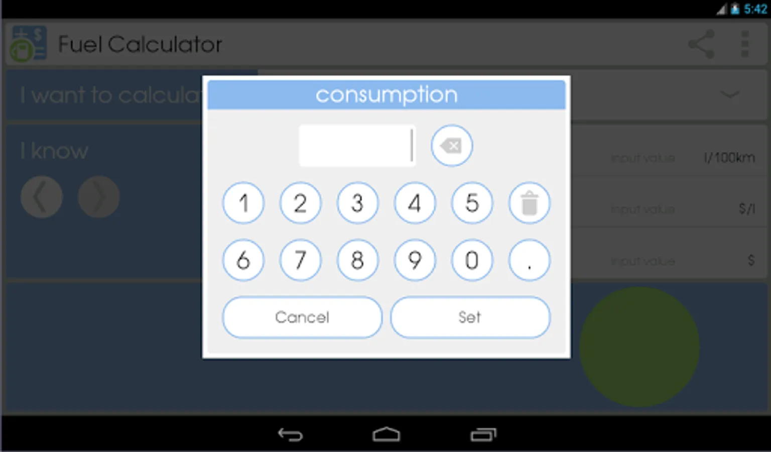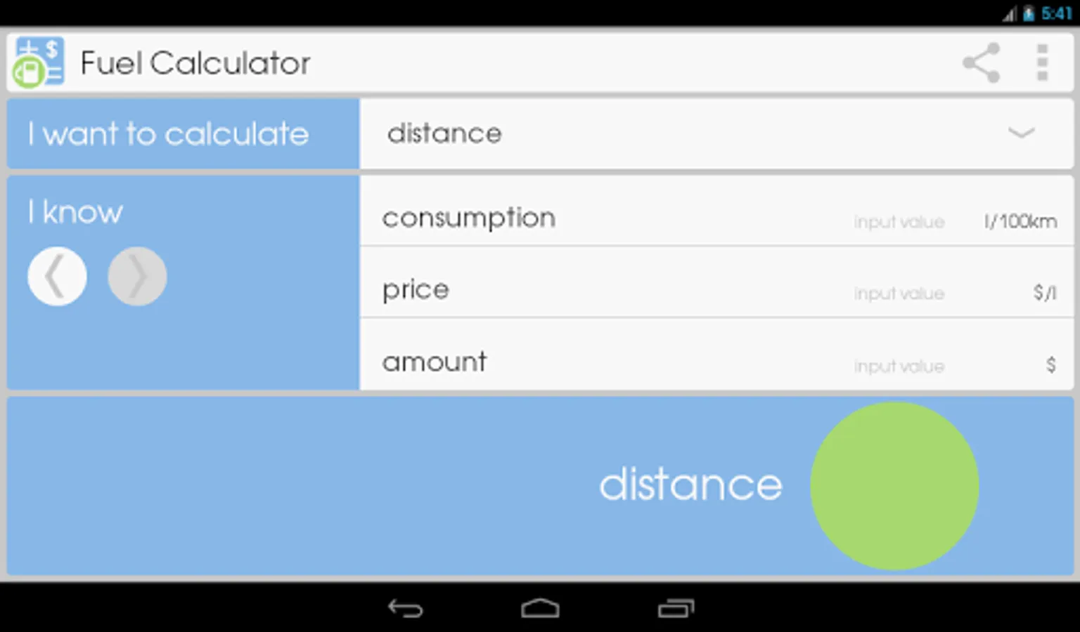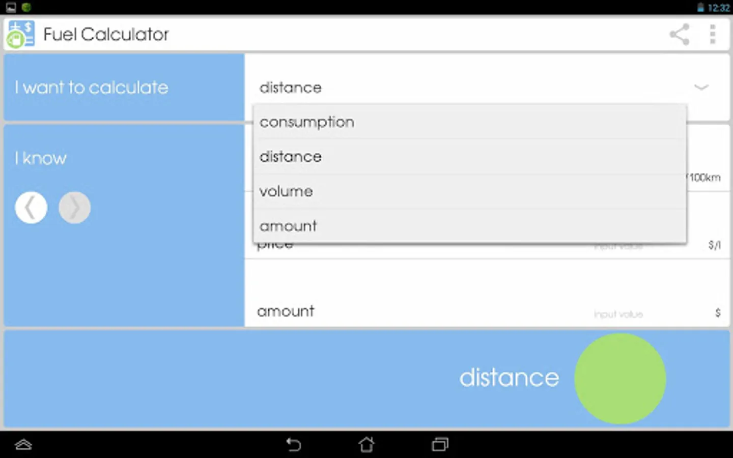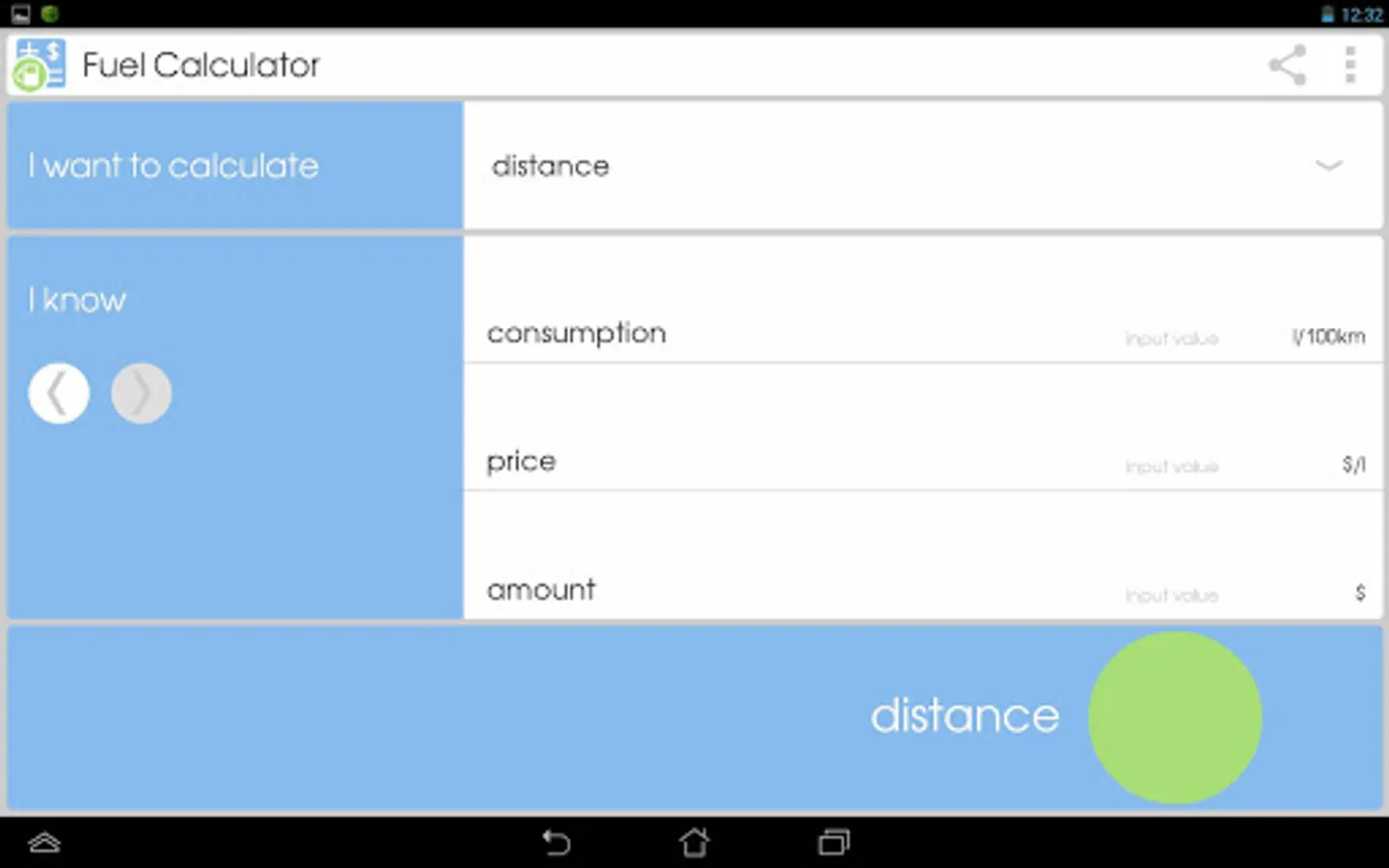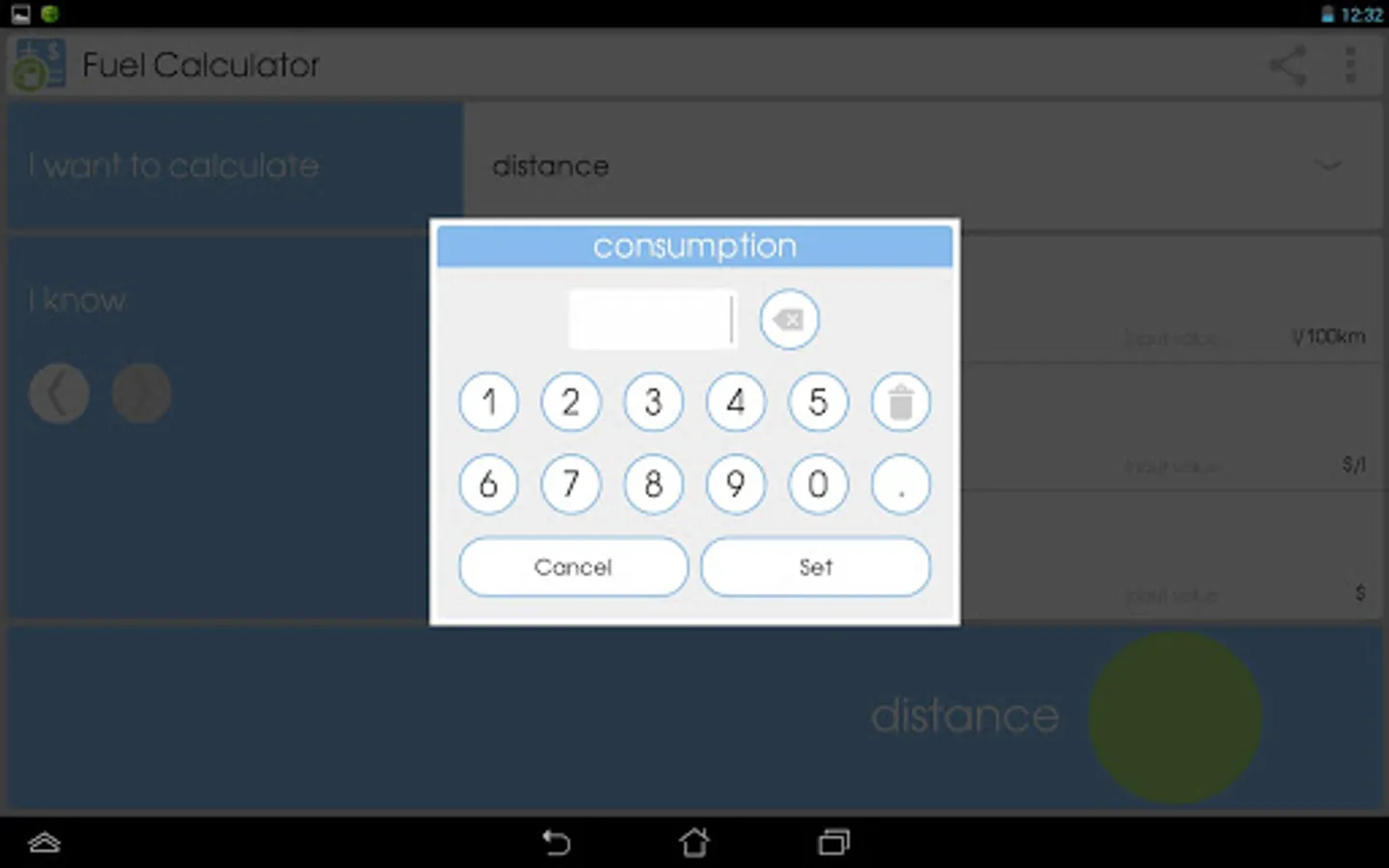 This app will help you to calculate:fuel consumption of your car, fuel cost and fuel volume, necessary for trip, distance, which you can drive after refueling.