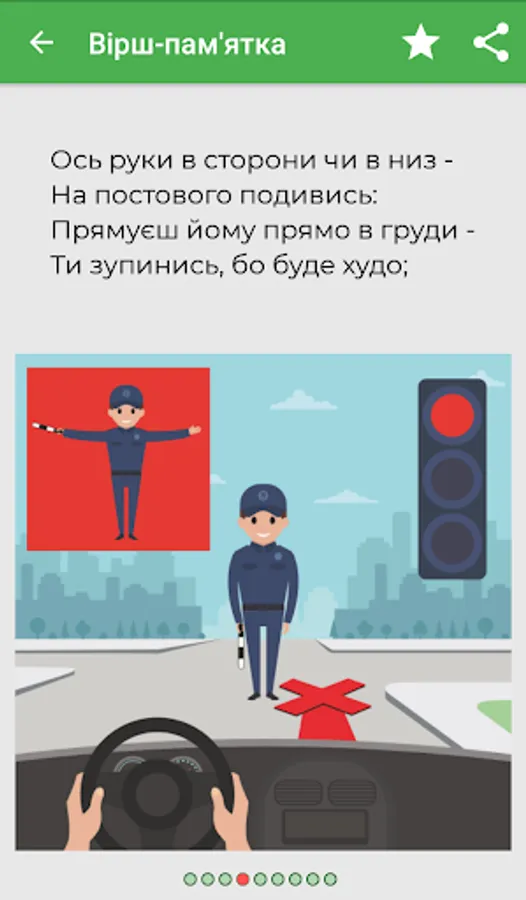 Why this topic? Road traffic tests in Ukraine include road signs, intersections and other important topics. However, they are encountered in practice, and therefore know them quite well. But the intersection, which is regulated by the police, rarely anyone passes at least once during driving lessons. Now imagine how annoying it is to answer the question of whether you passed the exam with annoyance: "Teach the gestures of the regulator!". Therefore, to help prepare for traffic rules tests, we chose this topic and tried to make it more interesting to study.