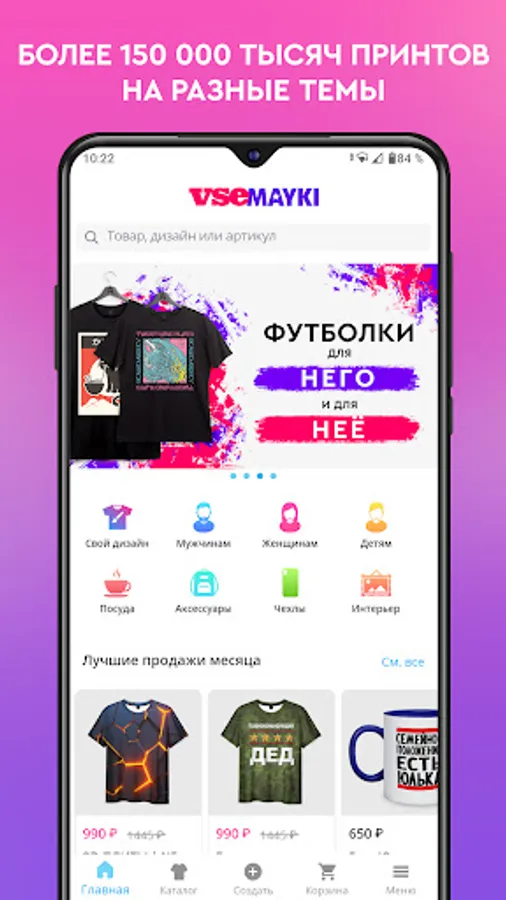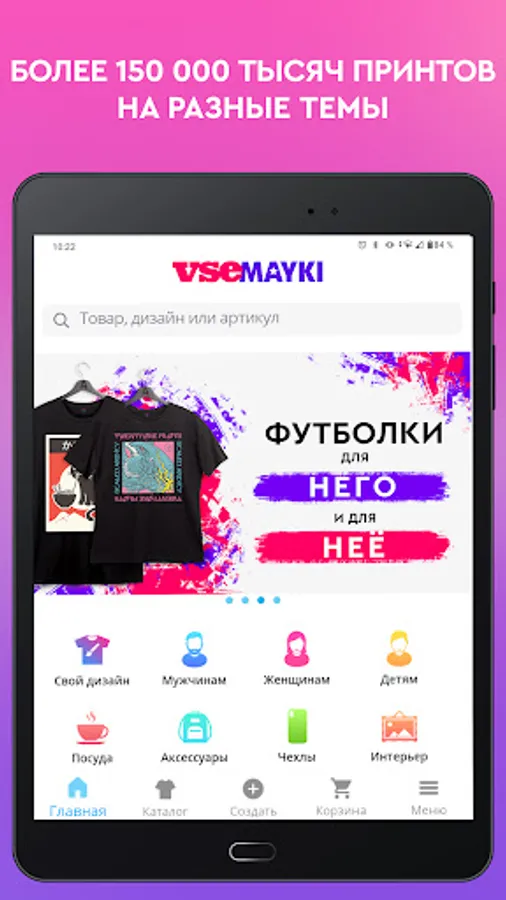 The Vsemayki app features over a million items: printed t-shirts, clothing, gifts, and more!