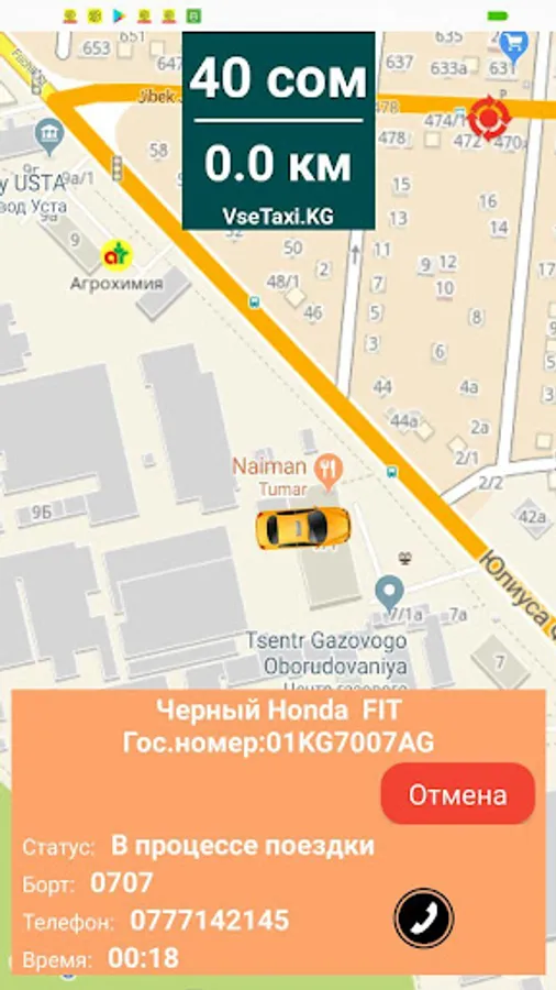 Detailed map of 2gis Bishkek and Osh. It is possible to see the location of the driver on the map before and during the order process. Safely.