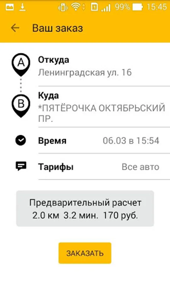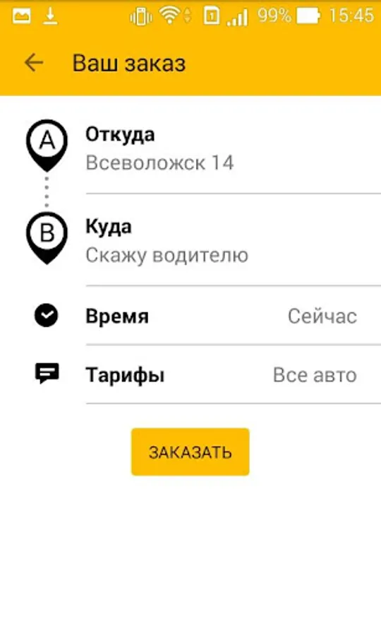 - Taxi without a call to the dispatcher. Select a point on the map, no need to write long address manually;