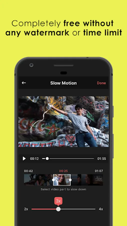* Adjust video and audio speed and convert specific part of your video into slow motion of fast motion effect.