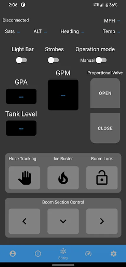 Voigt Smith Innovation App that allows VSI customers to operate their VSI sprayer, use auto rate control via sensor and GPS data, and track their usage in CSV format. The VSI App gives users a digital experience that will take you a step above the competition!