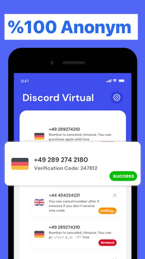 • Virtual Numbers App provides numbers from over 100 countries, but if you don't have a local phone number for your country, you can still get a US number or any other number and activate a Discord account!