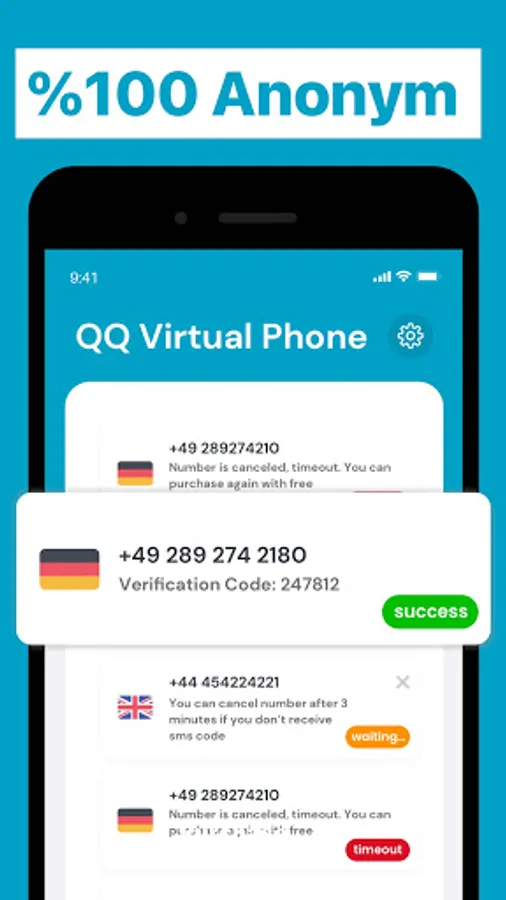 • Virtual Numbers App provides numbers from over 100 countries, but if you don't have a local phone number for your country, you can still get a US number or any other number and activate a QQ account!