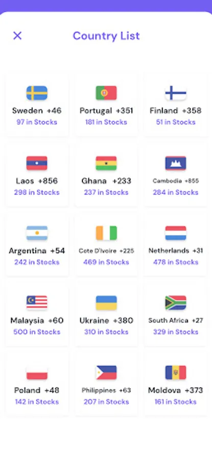 Available Countries (Our stock renew every 30 minutes)