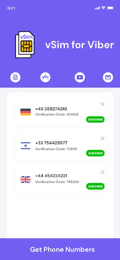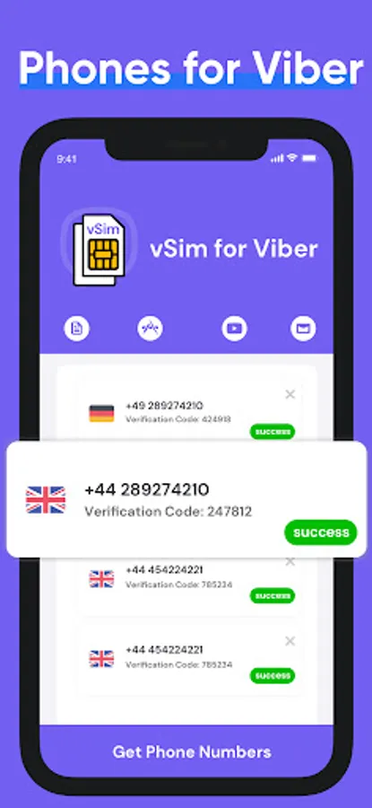 • vSim app provides clean, private, non-recycled phone numbers guaranteed to work with Viber.