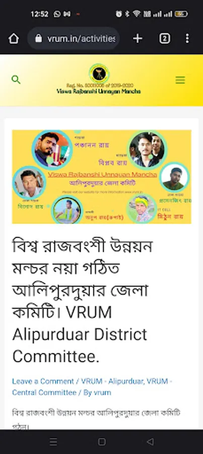 Viswa Rajbanshi Unnayan Mancha (VRUM) is a Social Organisation based on Kamatabhumi or official North Bengal. It work mainly for Koch Rajbanshi Kamtapuri people.