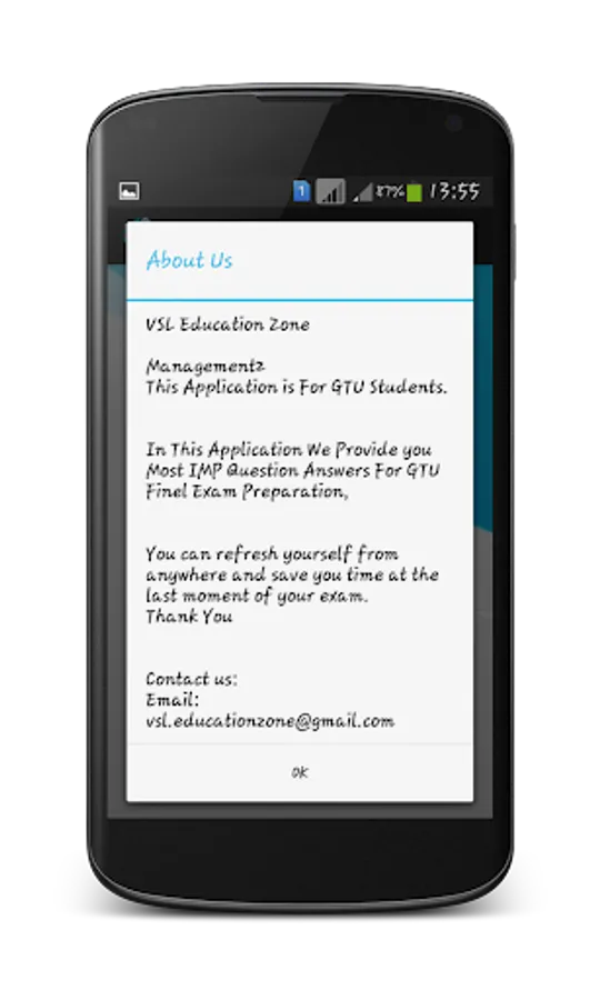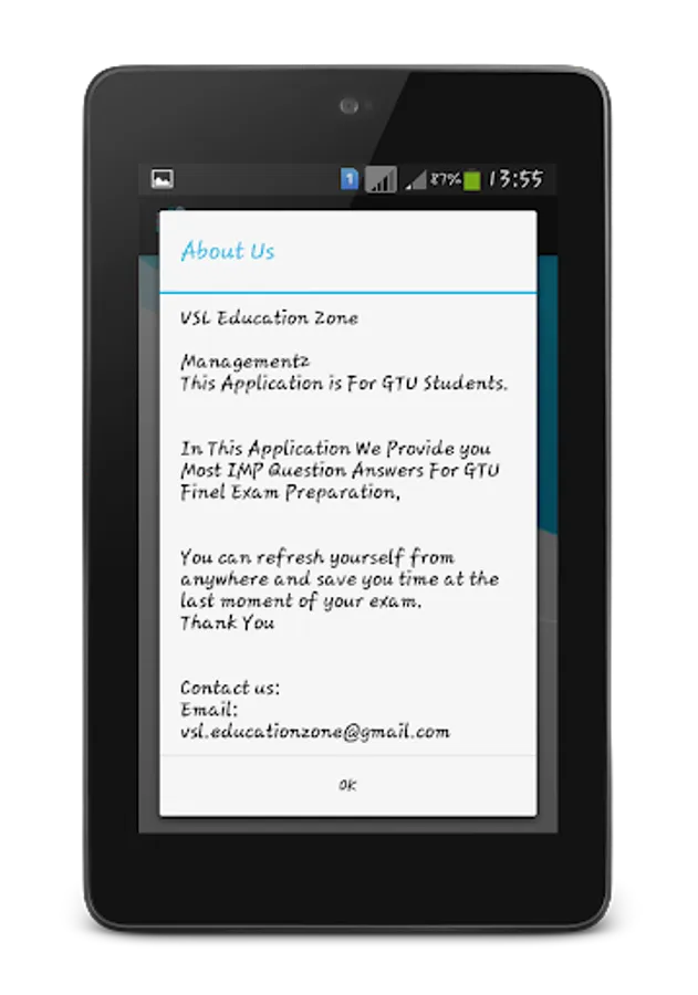 આ અપ્લિકેશન GTU ઇંજિનિયરિંગ Student માટે છે.આ અપ્લિકેશન મા gtu ની exam મા પૂછતા IMP પ્રસ્નો અને તેના ઉતર ફાઇનલ exam ની તયારી કરવા માટે મૂકાયેલ છે.આ અપ્લિકેશન ની મદદ થી ગમે ત્યારે ગમે તે જગ્યા પર exam ની preparation કરી શકાય છે.
