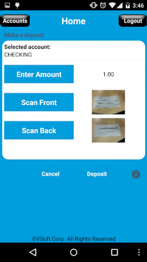 ECCU Mobile Deposit Screenshots