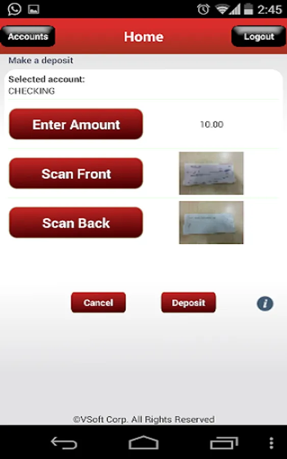 2. Select “Deposit Check”