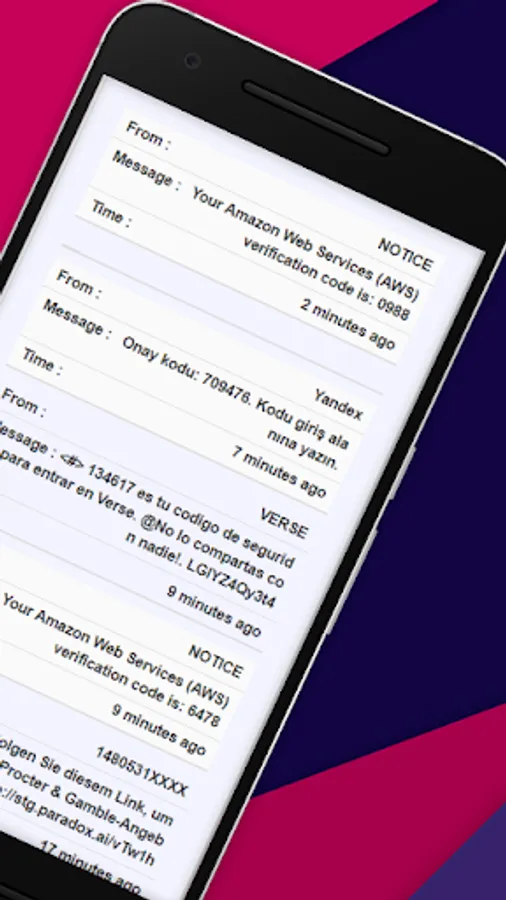 Application SMS Receive will provide for you some phone numbers in different countries where you can send SMS then the messages will show up on the application.