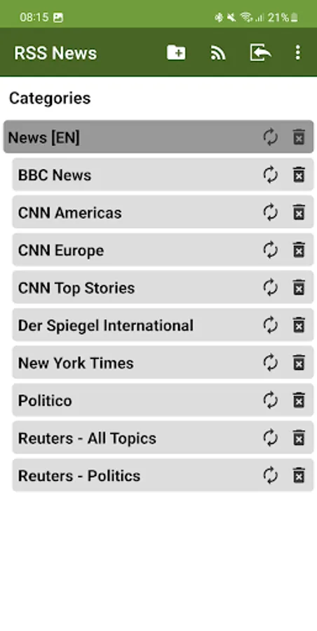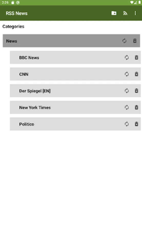 News sources (RSS feeds) can be organized into categories. Both news feeds and categories can be easily and freely managed (add new ones, edit, and delete).