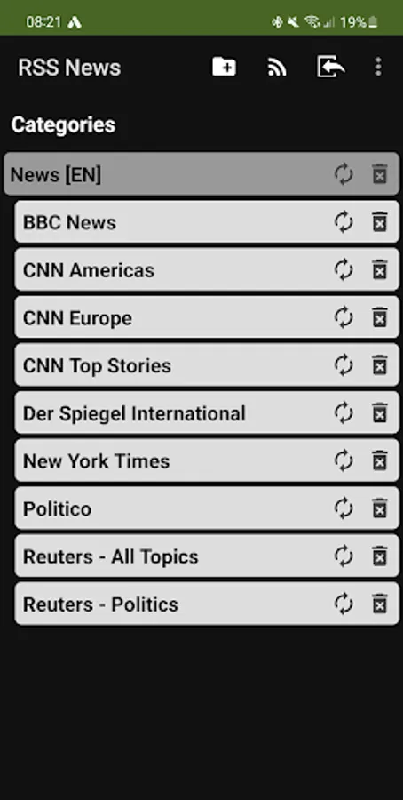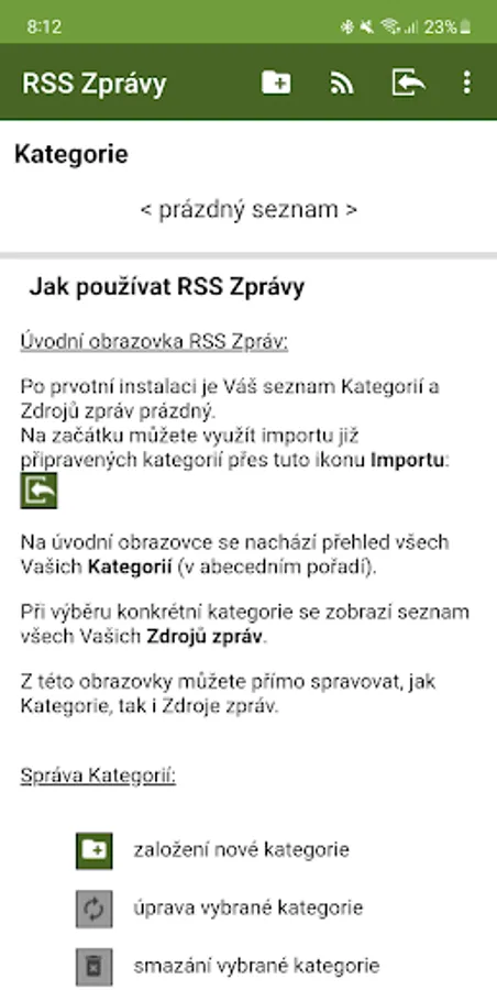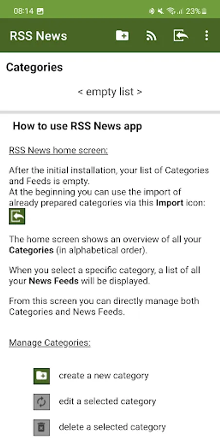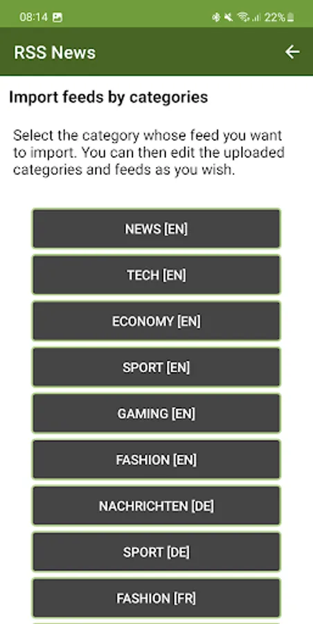 The application also offers the import of preset basic categories and news from the most famous publishers, which can then be edited according to the user's needs.