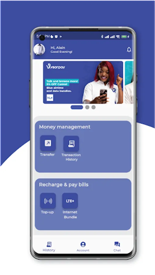 Welcome to Vsorpay; the first super-app in the CEMAC region. With Vsorpay, we are connecting you to the financial world where you can send money to friends and family, top-up airtime, purchase data bundles, pay your bills, create merchant accounts, and much more.