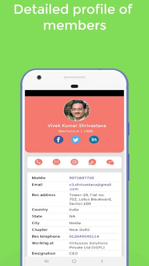 - Connect with other members through Call, SMS and Email. Group SMS & Email can also