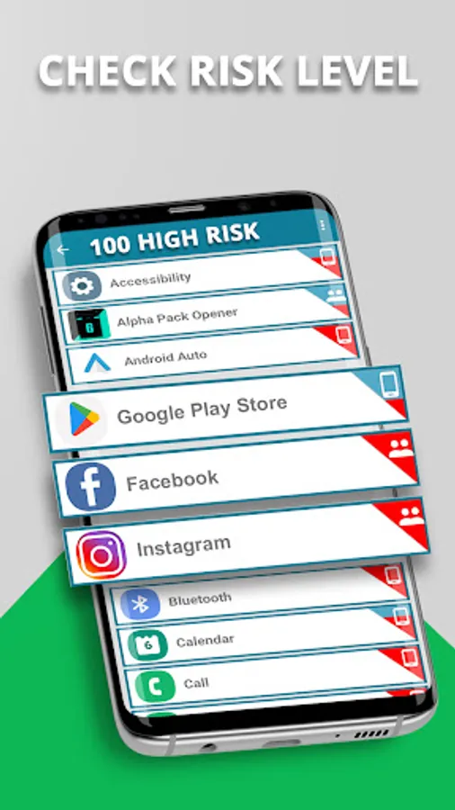 Revo Permission Manager assesses the vulnerability of private data shared with the applications on the users’ android device. The groups are divided by risk priority - High, medium, low and no risk. The user can see which app may be harmful to private data. The list emphasises the risky apps, so the user can make an infomed decision to edit the permissions or stop using the apps.