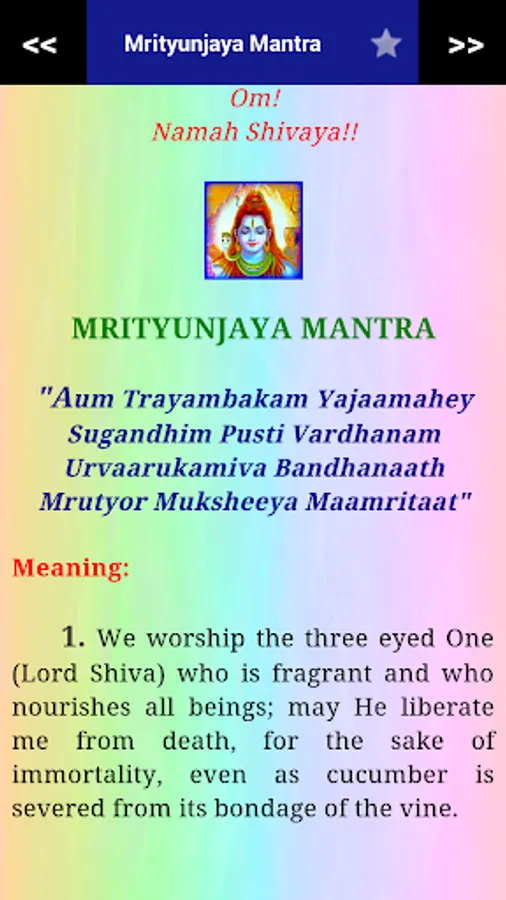 The main iconographical attributes of Shiva are the third eye on his forehead, the snake Vasuki around his neck, the adorning crescent moon, the holy river Ganga flowing from his matted hair, the trishula as his weapon and the damaru as his musical instrument. Shiva is usually worshiped in the aniconic form of Lingam.