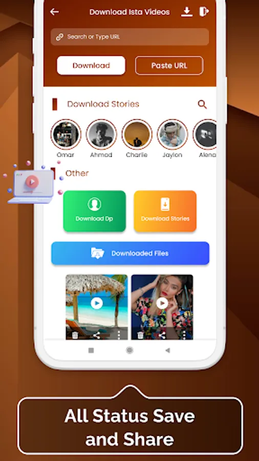 If you want to download any status, reels or video, simply click on download button, process start and done. You can also download video from copy URL and paste it.