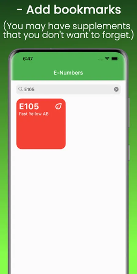 - Fast search so you're not spending hours in the supermarket looking up additives