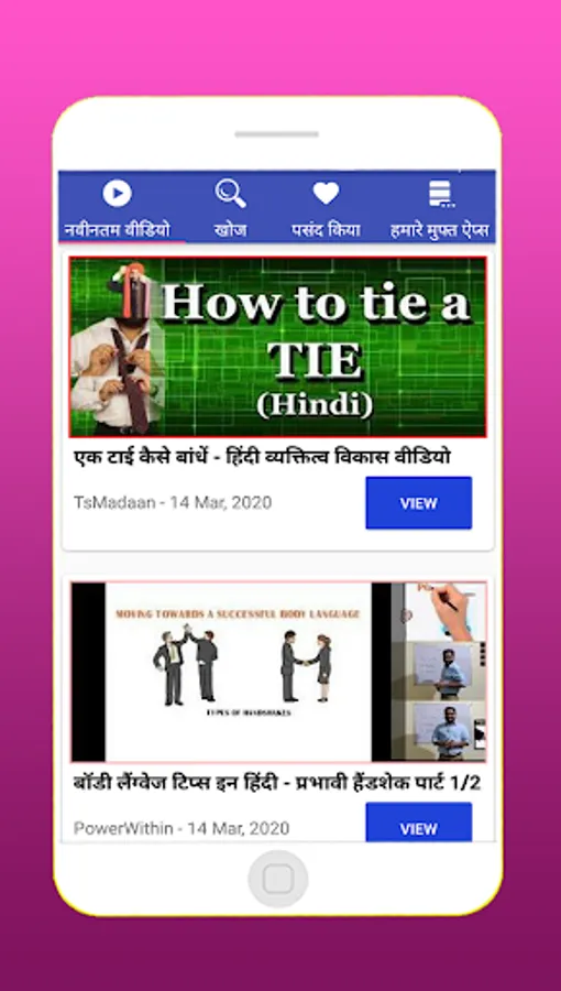 Welcome everybody! This video app contains soft skills courses videos in hindi. Here you can get skill training videos. We collect many of personality development 21 tips from online. Here we will tell about the basics of self development videos. Self improvement hindi videos is very useful in our daily life. Here you can get the fundamentals of skill development courses. Here you can find the communication skills course easily. Also your favorite varieties of assertiveness training videos. Here we tell the important things about self growth videos. It is the very compactable app for finding vocational skills videos. To share your favorite personality development in hindi pdf to everyone. It is developed by simple manner so its very to accessible. In this app having multiple number of presentation skills training course videos in hindi. Most of the personality development program videos are user friendly and flexible. Basic training skills videos take less time and give more ideas about it. Here we give high quality and efficient business communication course videos in hindi. This basic computer courses for beginners videos app made for you and know information’s about it. So that you get interview skills training videos easily. In this app we provide types of personality development videos in your mother tongue. In this soft skills in the workplace videos very easy to understand. Go through this time management training videos app and you will get more knowledge about this topic. So daily visit our basic negotiation skills training in hindi and finally you get more ideas about self development skills.