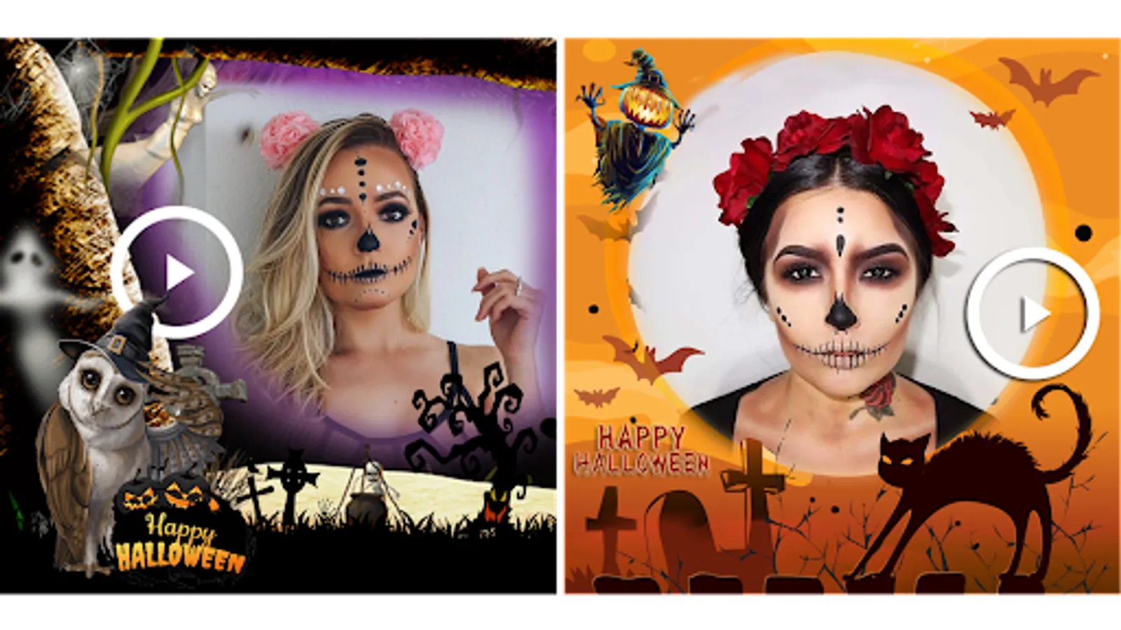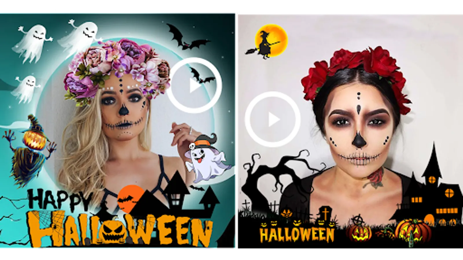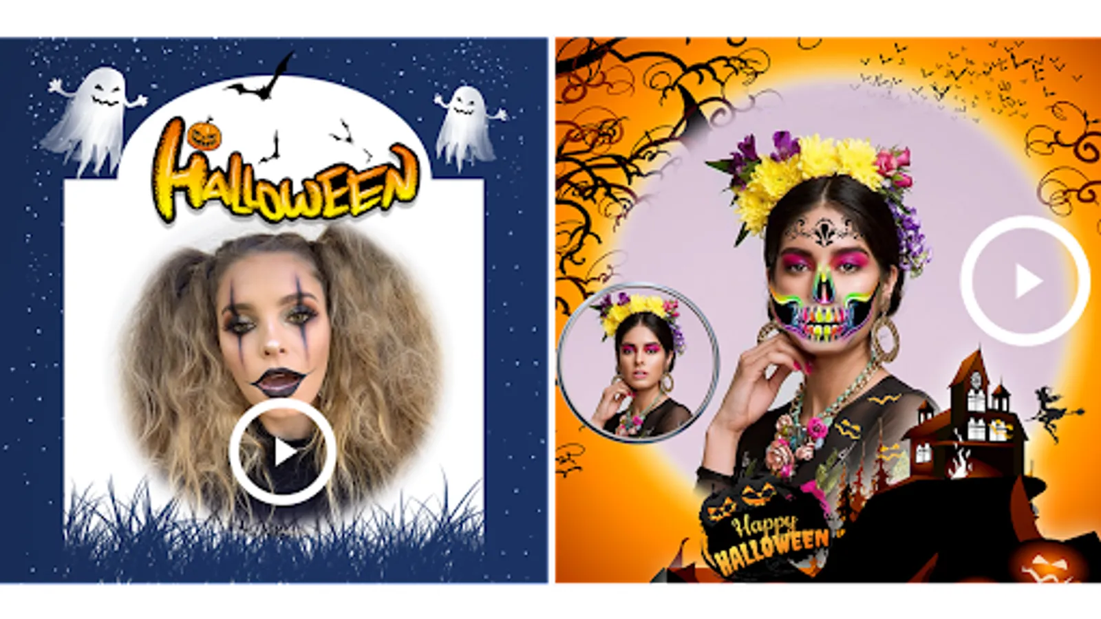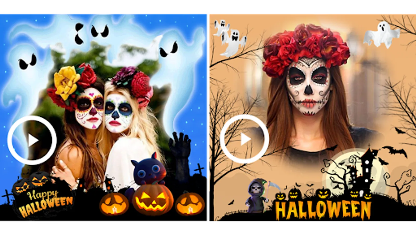 Halloween Photo Editor & Video Maker 2023 app for Halloween video making and creating Halloween makeup photo editor videos. Halloween photos with videos!