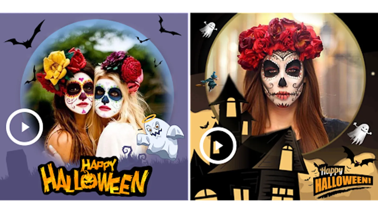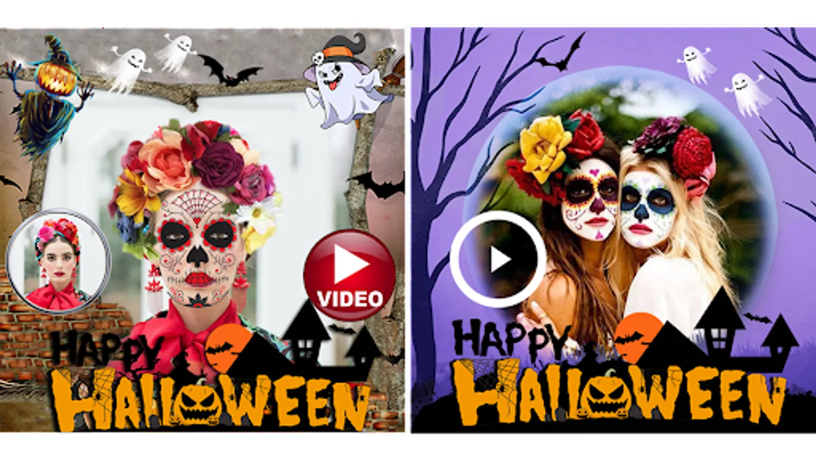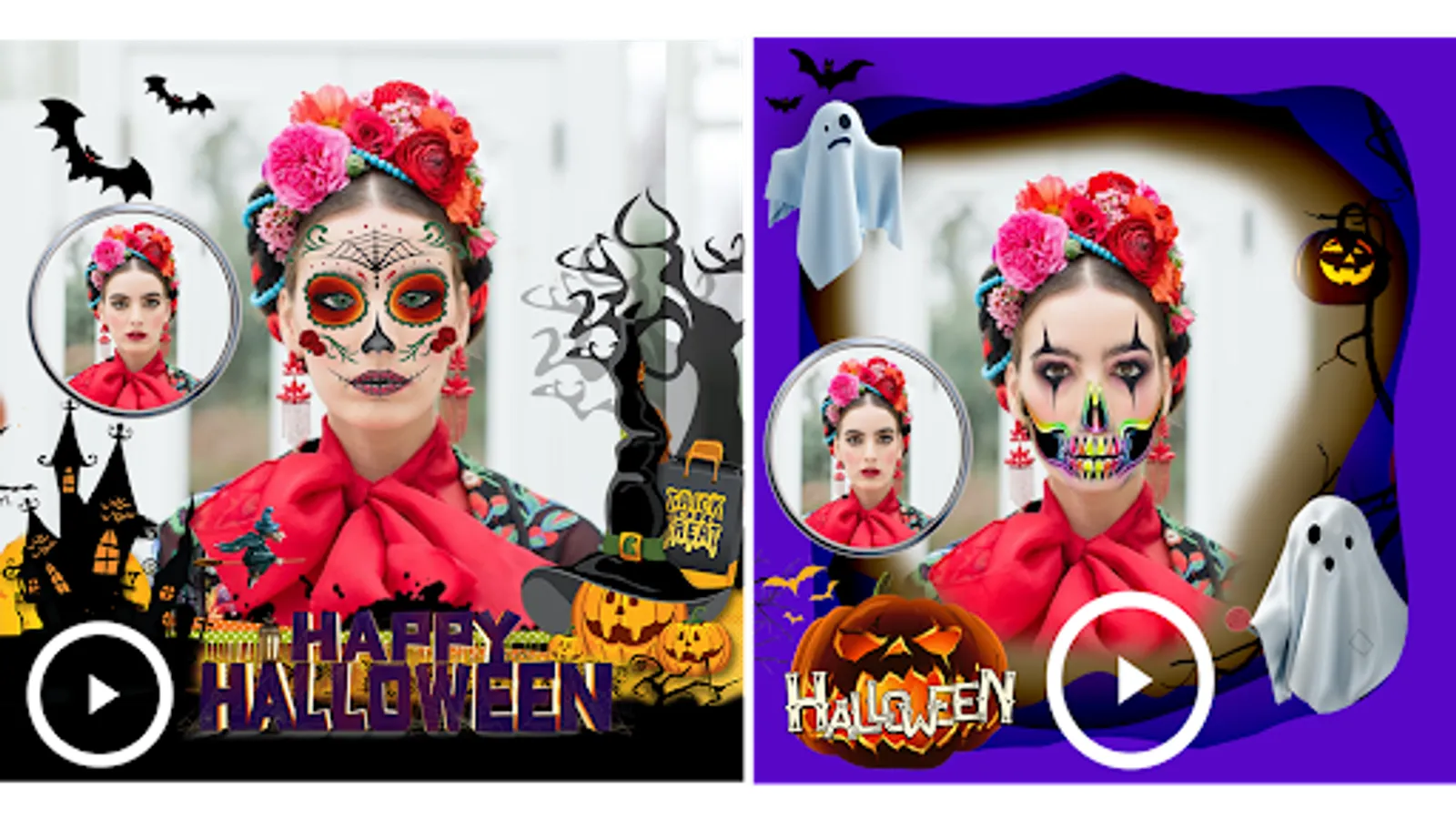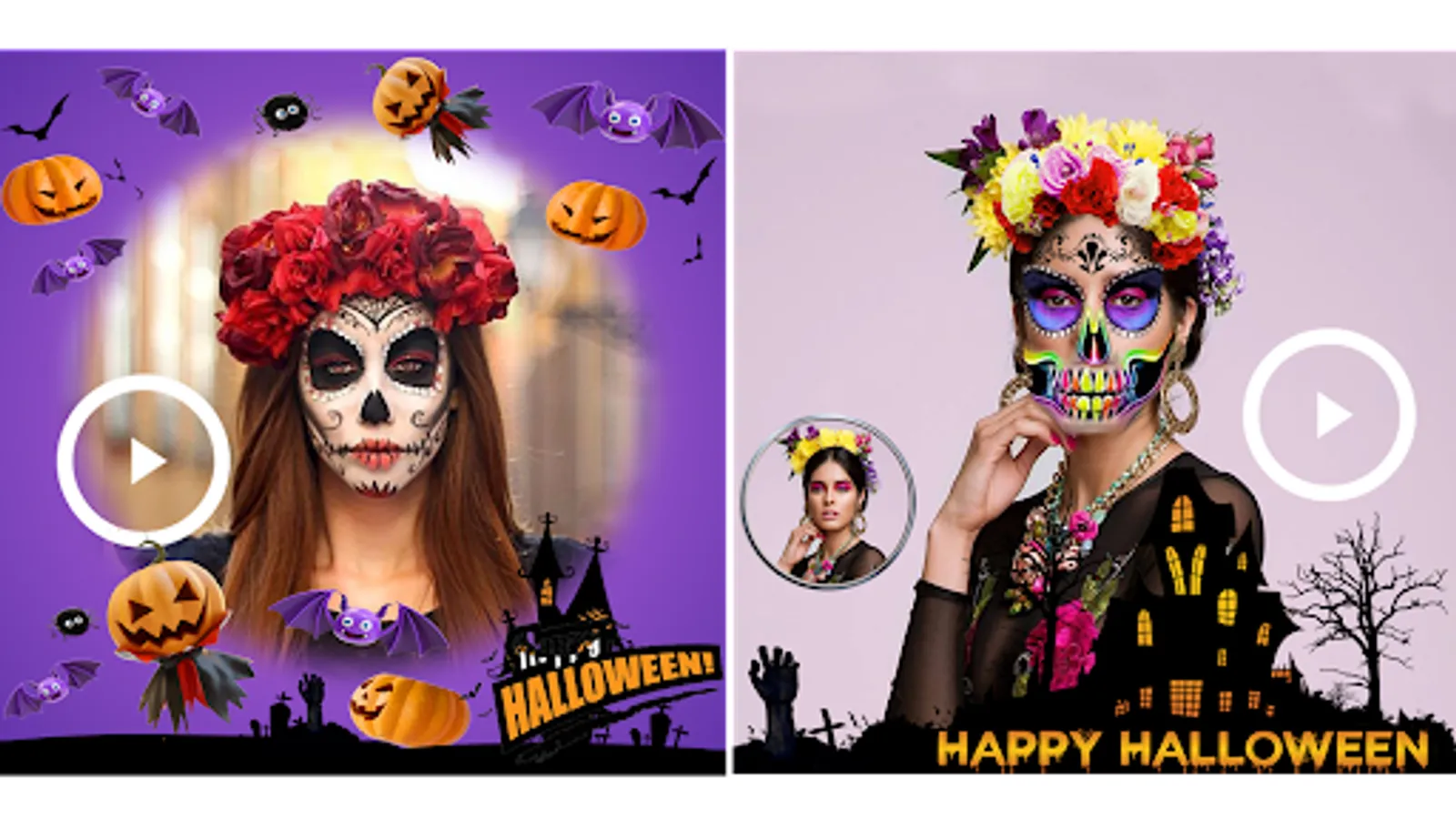 Halloween Photo Editor & Video Maker 2023 app for Halloween video making and creating Halloween makeup photo editor videos. Halloween photos with videos!